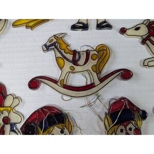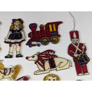VTG Sun Catcher Christmas Ornaments LOT OF 12 Lightweight Stain Glass-like Resin