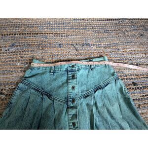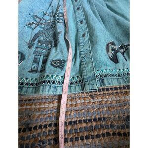 VTG Sundance Wilcher Puff Paint Women's M Turquoise Denim Skirt Acid Wash Pocket