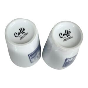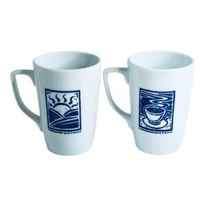 Vintage Sunrise Sunset COFFEE CUPS Set 2 Caffe Porcelain Poland Blue White Dietrich - NEW Condition!