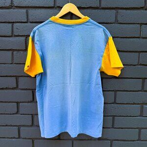 VTG Sunshine T shirt Racing Graphic Print Colorblock Blue Yellow L Short Sleeves