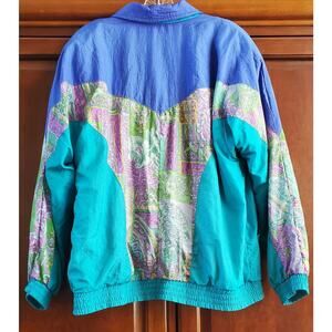 VTG Sunterra Windbreaker Jacket Womens L Totally 80s Block Muliti Blue Color