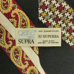 VTG Superba Qiana Nylon Black/Yellow/Red Paisley Geometric Tie