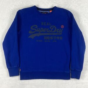 VTG Superdry Japanese Logo Sweatshirt Mens M Blue Gray Pullover Streetwear Y2K