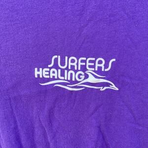 Vintage Surfer’s Healing T-shirt. Very soft. 60/40 cotton/poly blend. Very cute fit and honestly who doesn’t love dolphins?