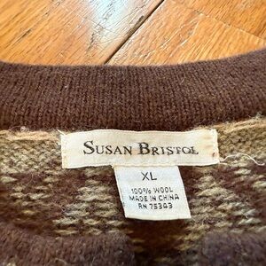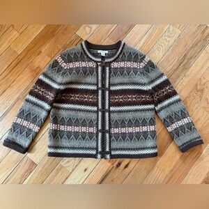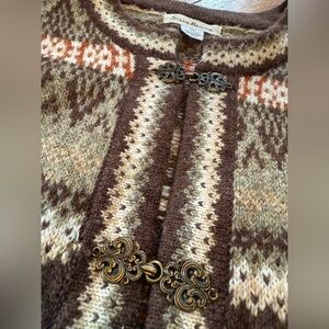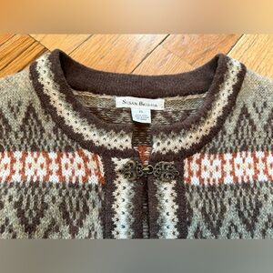 Vintage Susan Bristol 100% Wool Brown/Gray Fair Isle cardigan sweater, women’s size XL. Gorgeous metal clasp closure. EUC. No rips, holes, stains or odors. Please see photos for item details/dimensions. Some photos may appear different in color due to lighting. Ships from smoke-free home.