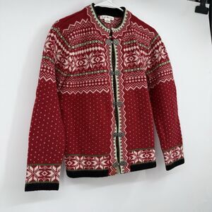VTG Susan Bristol Cardigan Sweater S 100% Wool Red Nordic Fair Isle Knit