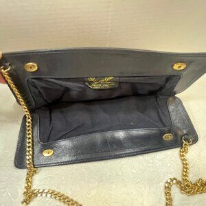 VTG Susan Gail Original Leather Rectangular Clutch Shoulder Purse Navy Italy