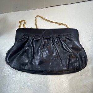 Vintage Susan Gail Original Genuine Leather Purse Clutch w/Gold tone Chain Strap
