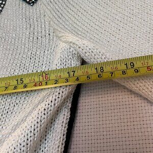 VTG Susann D 1980s Glam Color Block Sweater Medium Black White Blue Rhinestones Retro