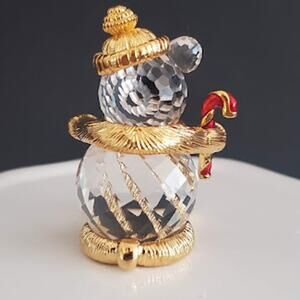 Swarovski Trimlite Holiday Teddy Bear from the Tree Trimmers Collection released in the 1980's. 1 3/8 inches tall and 1 1/4 inch at widest point. Has Trimlite stamped logo on the bottom. Made of Swarovski crystal and 24K Gold Plated Metal. Excellent condition.