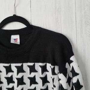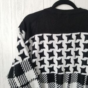 Vintage 80s Sweater Bazaar Houndstooth Plaid Check Combination Sweater; Size Medium; Black and white pattern allover; excellent used condition; very soft fabric;