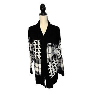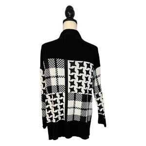 VTG Sweater Bazaar Womens Black/White Plaid Geometric Long Cardigan Size Small
