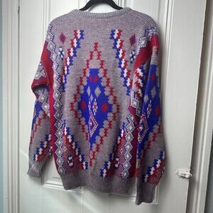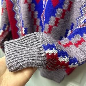VTG Sweater Womens Geometric Knit Pullover Grandma Preppy Patriotic Fair Isle