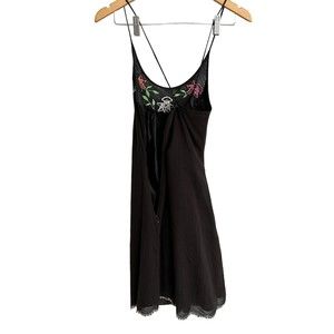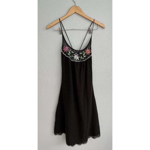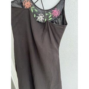 VTG Sweetees Embroidered Floral Black Zip Up Dress Boho size 8
