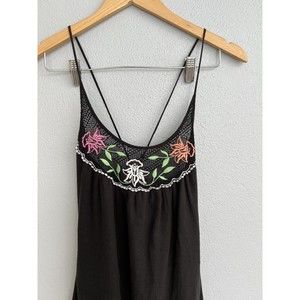 VTG Sweetees Embroidered Floral Black Zip Up Dress Boho Womens Size 8