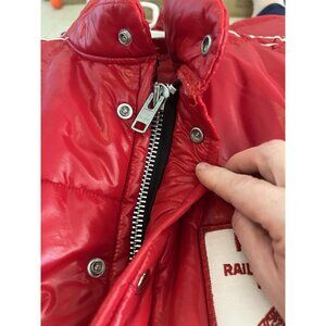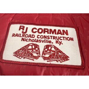 VTG Swingster Puffer Style Coat Red Sz L Made USA RJ CORMAN Railroad Patch