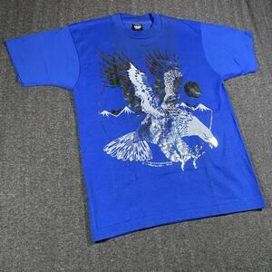 VTG T Shirt Screen Stars Reno L Blue Gold Foil Eagle Single Stitch Robert Walton