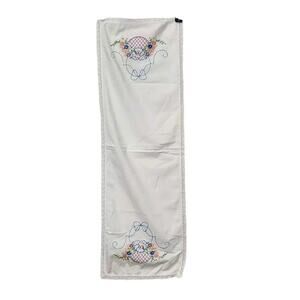 VTG TABLE RUNNER GARDEN BASKET FLORAL EMBROIDERED DRESSER SCARF ESTATE MCM