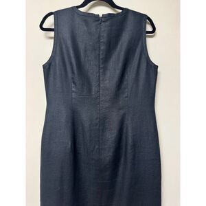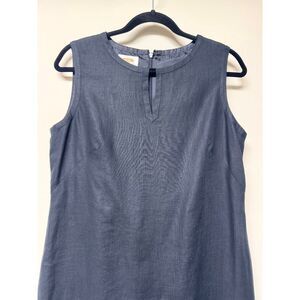 Gorgeous 100% Irish Linen sheath midi dress, fully lined. Sleeveless with keyhole front. Single side slit. Side slit is missing a few stitches but it's not torn and can be worn as is, see photo. This is a beautiful, high quality dress that will stay in your wardrobe forever.