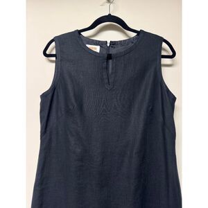 VTG - TALBOTS 100% Irish Linen Black Keyhole Front Sheath Midi Dress, Sz 12P