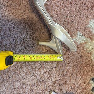 These VTG Talbots Champagne Leather High Heels are a stylish and elegant choice for any special occasion. With an open toe and strappy design, these slip-on heels feature a mid-height kitten heel for added comfort. The champagne color and leather material make them perfect for weddings, parties, formal events, or business functions. The adjustable strap adds a personalized touch to these timeless heels, which are sure to make a statement and elevate any outfit. Brand New with box, see photos for flaws from sitting around.