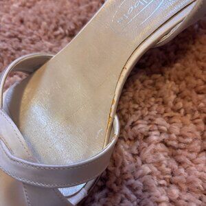 VTG TALBOTS Champagne Leather High Heels Open Toe Strappy Womens Sz 7M NEW-READ