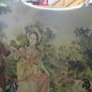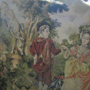 VTG TAPESTRY, COLONIAL STYLE THEME, DANCING COUPLE, LOTS OF DETAIL
