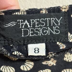 VTG TAPESTRY DESIGNS Short Sleeve Seashell Print Boxy Blouse in Black SZ 8