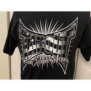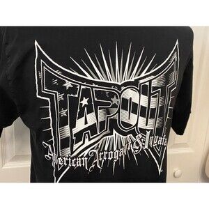 Tapout T Shirt looks new except some wear on the tag. Black with white graphic. Full graphic on the front, smaller graphic on the back shoulder. Men's size Large