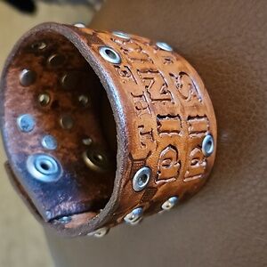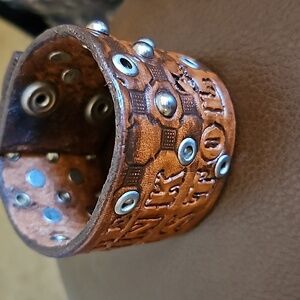 Bracelet is 2" wide and 9.5" length. Snaps closed at 8". Add a bold statement to your accessory collection with THE PINK PISTOL Miranda Lambert Wide Studded Leather Snap Bracelet. This edgy bracelet features high-quality leather adorned with striking metal studs, reflecting Miranda Lambert's signature style. The adjustable snap closure ensures a comfortable fit, making it a versatile and standout piece for any outfit. Perfect for adding a touch of country rock flair to your look. ๐Ÿ’Œ 5 Star Seller ๐Ÿ’Œ Clean Smoke Free Home ๐Ÿ’Œ Free Shipping on orders $100+ ๐Ÿ’Œ Bundle for Additional Savings ๐Ÿ’Œ Accepts Reasonable Offers ๐Ÿ’Œ Listings are in good condition unless a flaw is disclosed ๐Ÿ’Œ Reliable Fast Shipping Time ๐Ÿ’Œ New Items Added Weekly ๐Ÿ’Œ $15 and under are FINAL PRICE collectible
