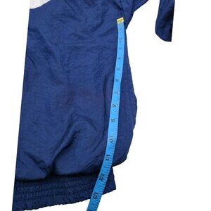 The product is a men's vintage XL blue windbreaker suit, perfect for the 80s and 90s style. The suit includes a jacket and pants, making it ideal for a retro-inspired look. Whether for a casual outing or a nostalgic trip back in time, this suit is a stylish addition to any wardrobe, combining elements of athleisure sportswear with a touch of vintage flair.