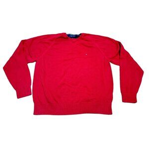 VTG TOMMY HILFIGER Y2K SWEATER SIZE XL RED BASIC CREW NECK COTTON MENS