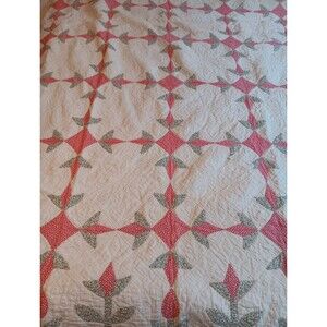 VTG TULIP Colorful QUILT APPLIQUE PATCHWORK 75" X 74” Needs Mending