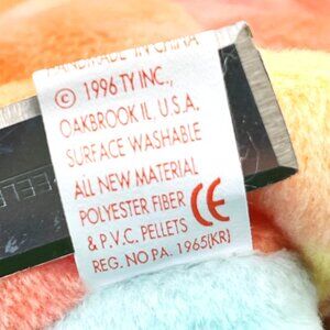 Relive the Beanie Baby craze of the '90s with this iconic Peace the Bear! This vintage original is in pristine, mint condition and comes complete with its original, perfect tags. A must-have for any collector or as a nostalgic gift. This lovable tie-dye teddy bear, Style 4053, was born on February 1, 1996. Its unique, vibrant rainbow pattern means no two Peace bears are exactly alike. It features an embroidered, multi-colored peace symbol on its chest and has all of its original details, including its heartfelt poem on the swing tag. Whether you're looking to fill a gap in your collection or simply want a piece of pop culture history, Peace the Bear is an essential addition. Don't miss out on this fantastic opportunity!