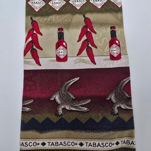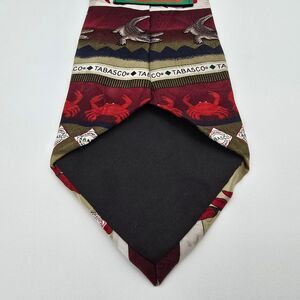 Vintage Tabasco Crab and Gator Men's Silk Tie 4x58. The tie measures 4" wide at the blade and 58" from tip to tip. Ties are rolled and placed in plastic bags and shipped in bubble mailers for protection. Wrinkles may form in shipping, and ironing may be required upon receipt.