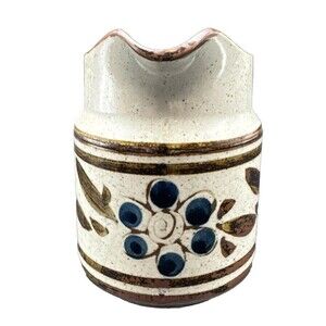 VTG Takahashi Stoneware BROWN w/ BLUE Floral Speckled 6” Pitcher MCM 32oz