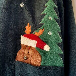 This festive vintage jacket features detailed appliqués of Santa and a reindeer, complemented by a warm fleece material and plaid lining. Vtg chritsmas, 90s Y2k