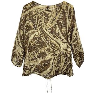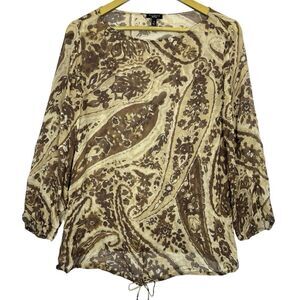 VTG Talbots 100% Silk Blouse 8 Brown Fairy Grunge Paisley Y2K Sheer Whimsigoth