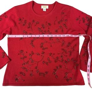 VTG Talbots 100% Wool & Beaded Red Sweater Made in Hong Kong Sz Small Petite