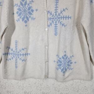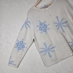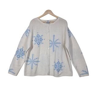 VTG Talbots Lambswool Angora Cardigan 1X Ivory Blue Snowflakes Holiday