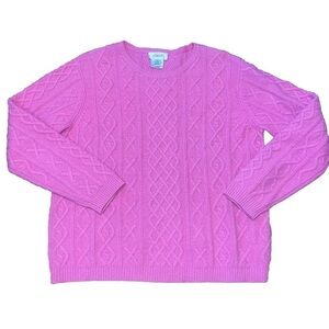 VTG Talbots Lambswool Blend Fisherman Cable Knit Sweater Sz M Pink Classic Prep