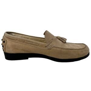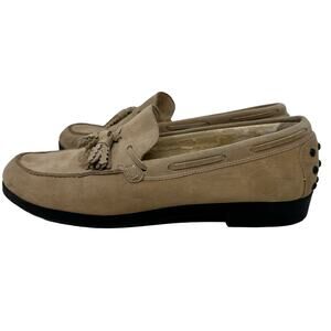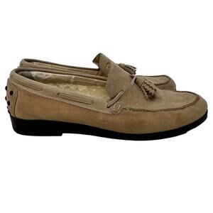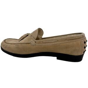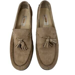 Talbots Vintage Tan Suede Loafers. Really cool fringed tassels cut in a zigzag pattern. Studded Heel.