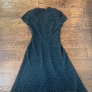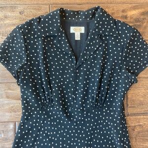 VTG Talbots Midi Black Polka Dot Flutter Dress Sz 6 Retro Collared Rockabilly