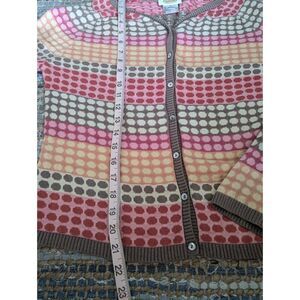 VTG Talbots Womens M Sweater Cardigan Polkadots Colorful Retro Cashmere Cotton Pink Orange Black White Spotted Button Up Pullover Round Neck Multicolor Cluttercore Twee 90s Mod Stripes Ringer Office Work Business Weekend Casual Preppy Brunch Lunch Dinner Barbiecore Lifestyle Transitional Weather Layering Lagenlook Fall Winter Spring