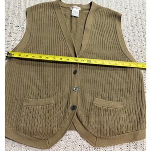VTG Talbots Sweater Vest Button 100% Cotton Academia Women's Size Large Tan Olive