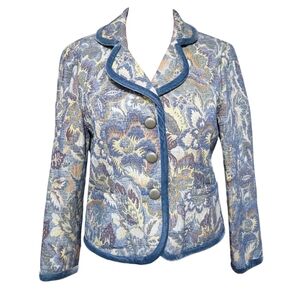 VTG Talbots Tapestry Floral Blazer Jacket Velvet Trim Sz 4P Grandmacore Cottage
