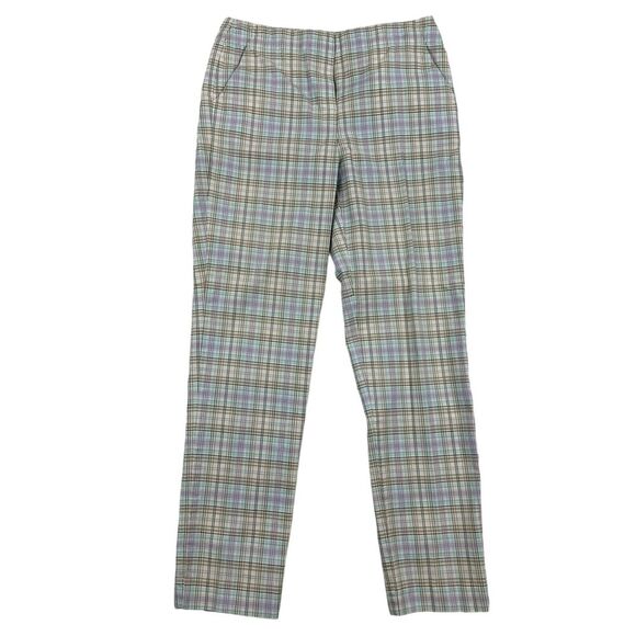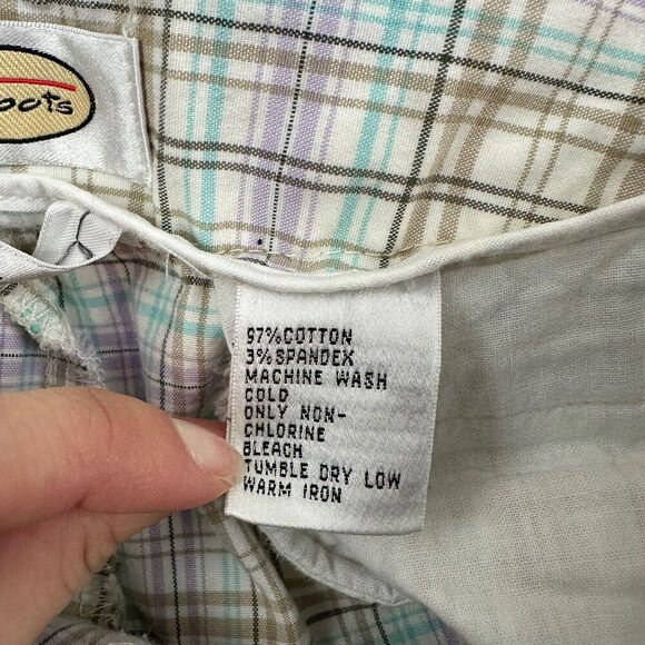 VTG Talbots White Multicolor Plaid Cropped Pants Stretch Cotton Spandex Sz 4