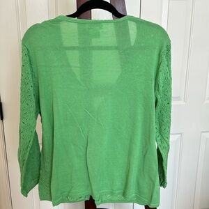VTG Talbots Woman’s 100% Cotton Pointelle Knit Long Sleeve Green Cardigan Sz XL