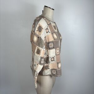 VTG Talbots Womens L Granny Square Cardigan Sweater Hand Knit Boho Hippie Retro