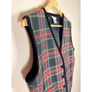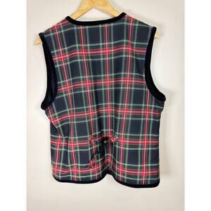 VTG Talbots Women’s Vest Plaid Red Green Velvet Trim Christmas Holiday Medium